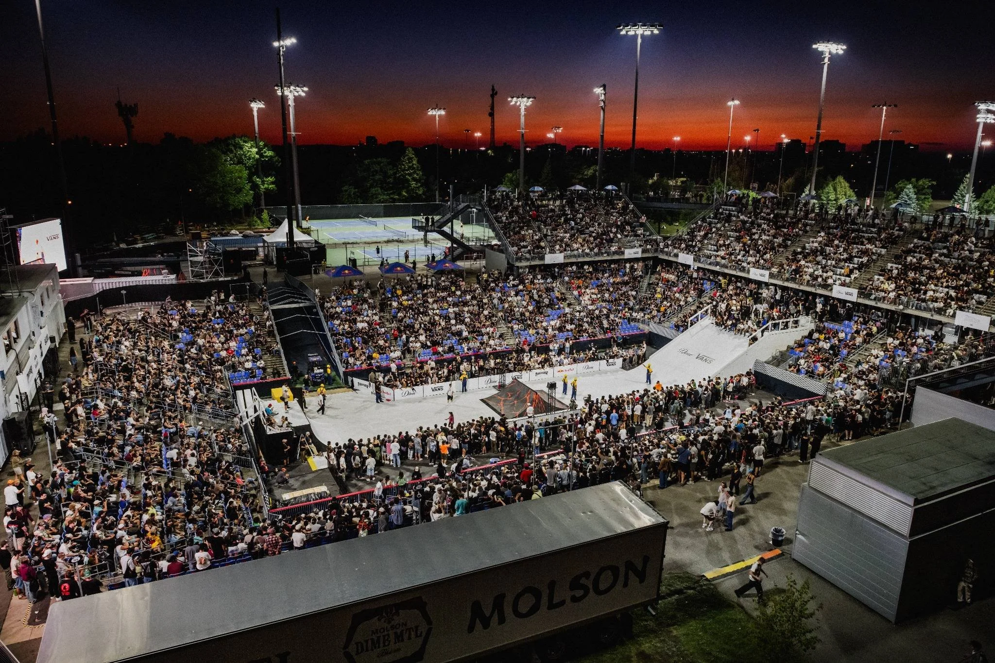 In 2025, DIME made a triumphant return to Montreal’s IGA Stadium with its most ambitious edition yet of the Dime Glory Challenge — a celebration of 10 years of perfectly orchestrated absurdity. Fire, dodgeball, outrageous obstacles, and pure madness turned the stadium into a true skateboarding arena.